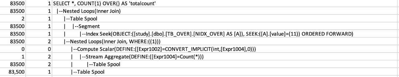 결과 집합 모든 행에 전체 행 수를 조인하기 위해 Spool이 사용된다.