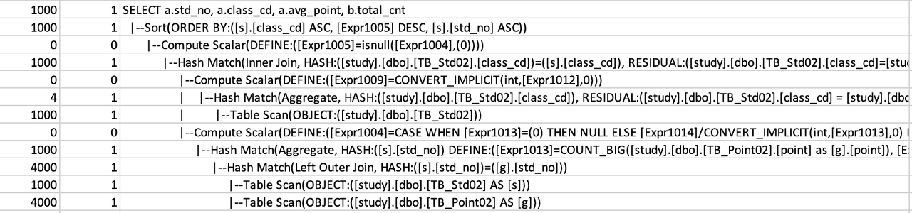 [class_cd] 컬럼을 그룹별로 집계하는 과정에서 Spool이 사용되는데, 이는 두 테이블을 조인하여 평균값이 구해지는 테이터를 임시 테이블에 저장하고 다시 읽어내면서 그룹별로 행을 집계하기 위해 사용된다.