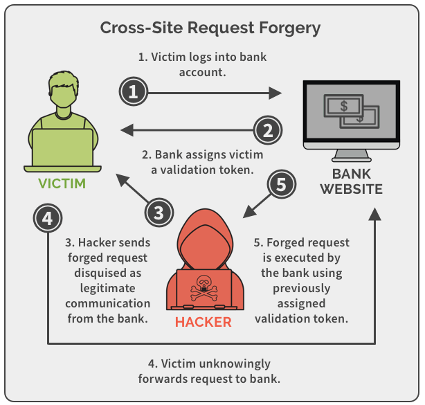 - 사이트 간 요청 위조(크로스 사이트 요청 위조, Cross-site request forgery, CSRF, XSRF)는