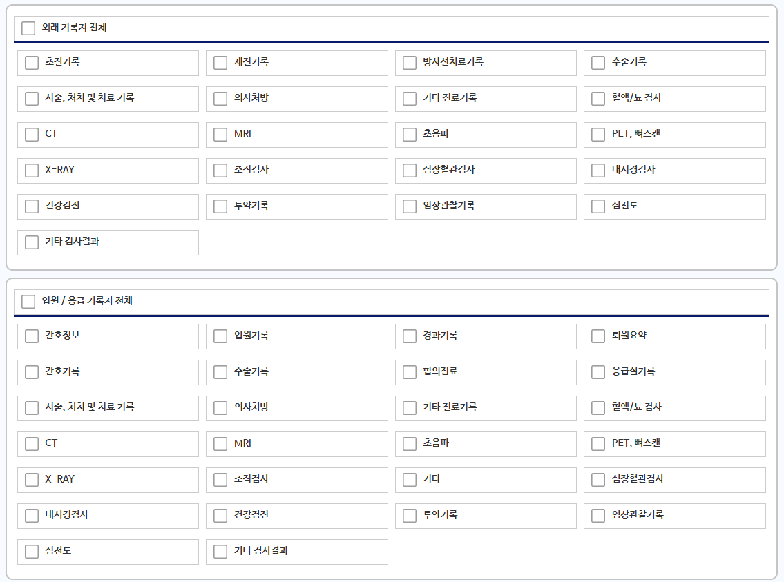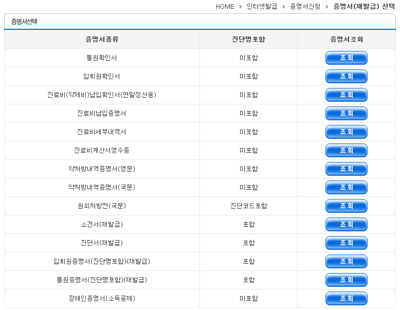 모든 증명서가 병원에서 제공하는 의무기록사본 출력 목록에 없는 경우는