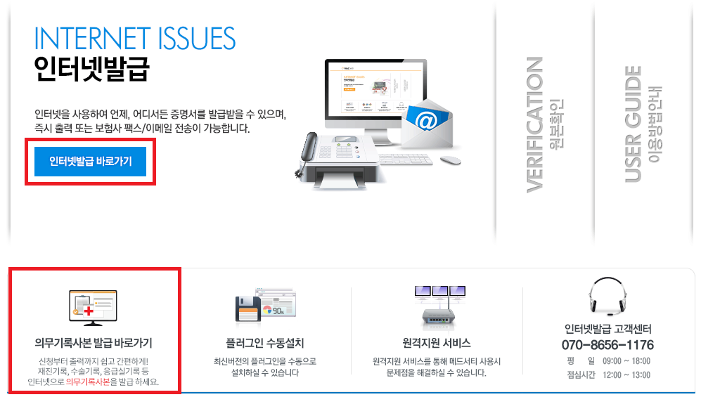 진료비세부내역서, 입퇴원확인서 와 같은 증명서는 제증명서 출력(인터넷 발급)에서.