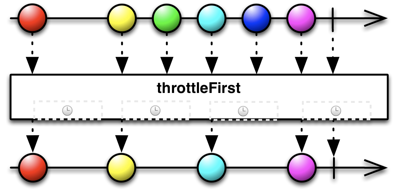 - throttle : 일정한 시간동안 처음 발생한 이밴트만 발생하도록.