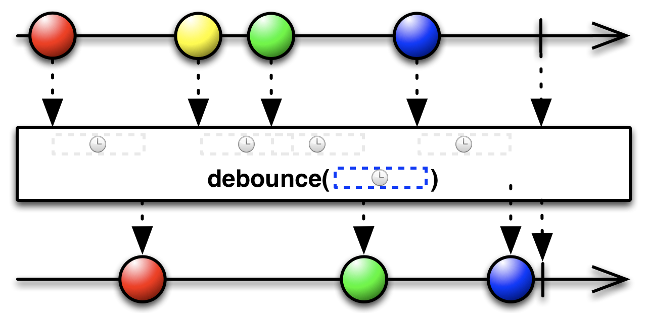 - debounce : 이벤트를 그룹화하여 특정시간이 지난 후 마지막 이벤트만 발생하도록.