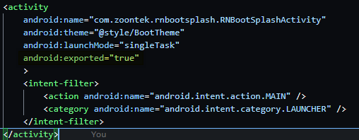 (at Binary XML file line #78): com.zoontek.rnbootsplash.RNBootSplashActivity: